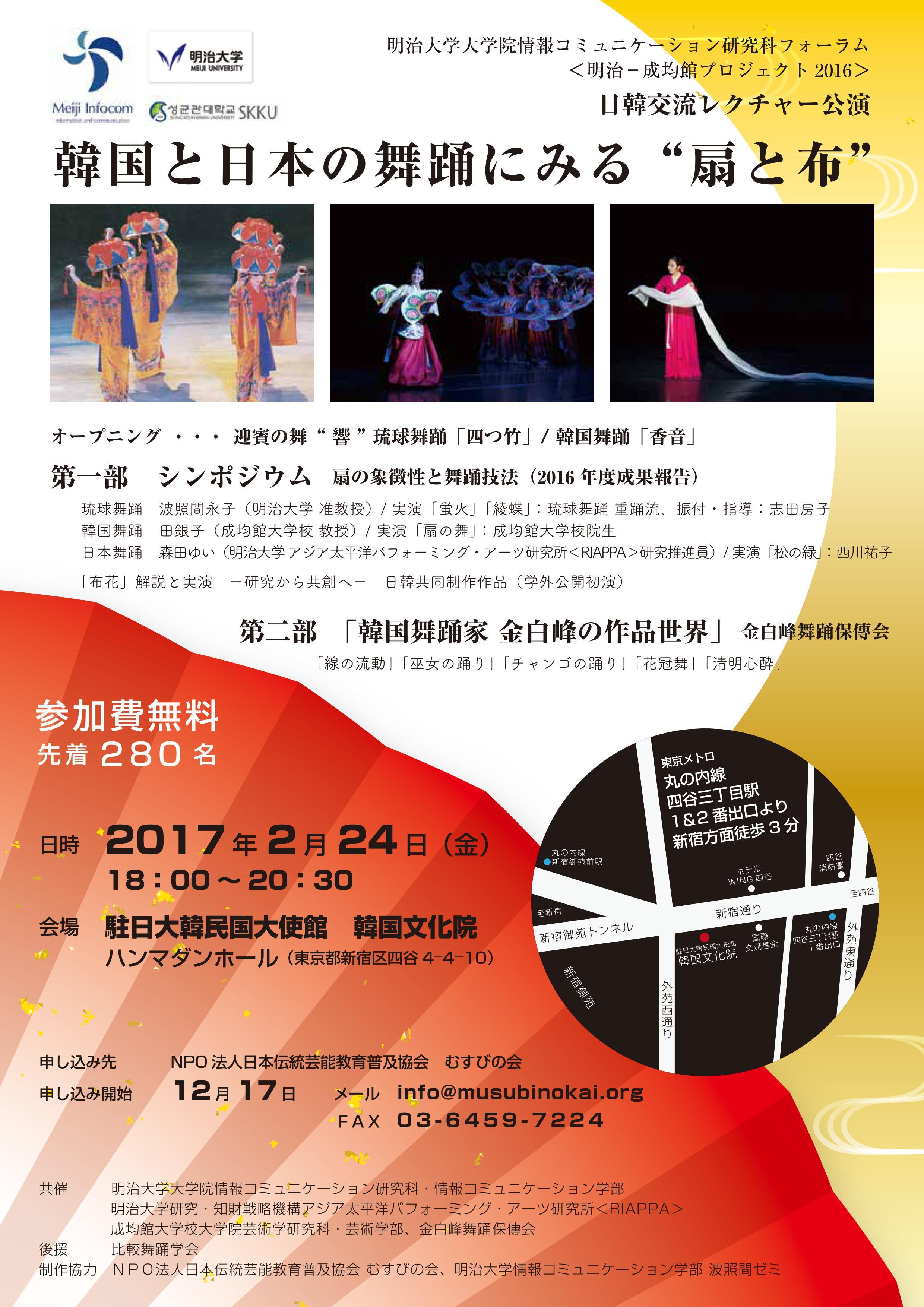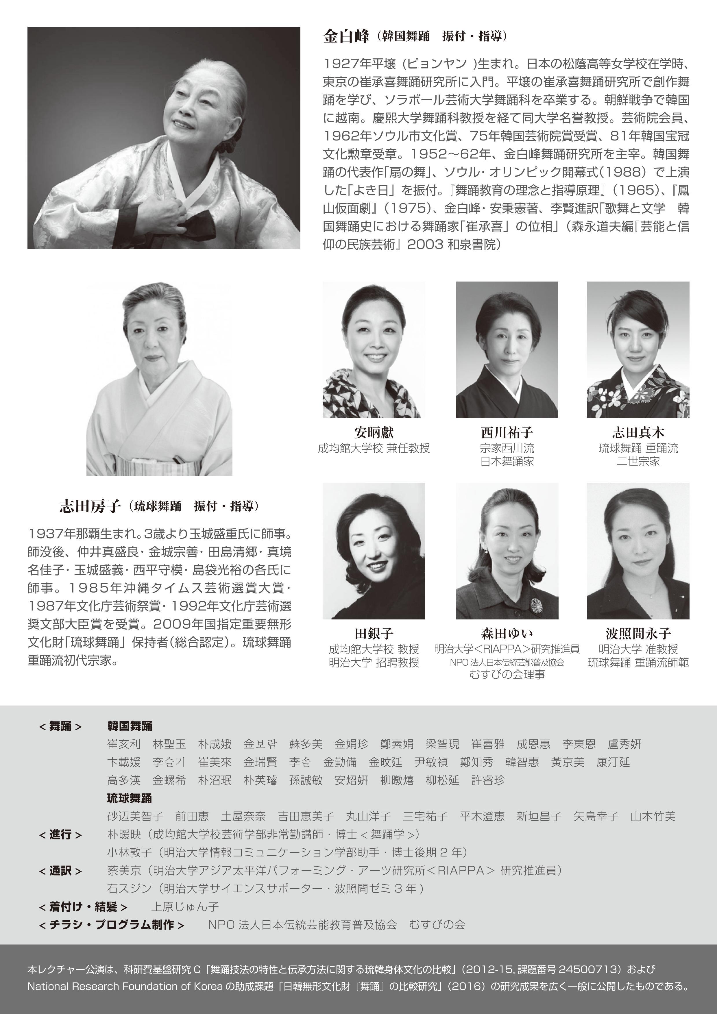 明治大学研究・知財戦略機構 アジア太平洋パフォーミング・アーツ研究所、比較舞踊学会 伝統等舞踊研究会 共催