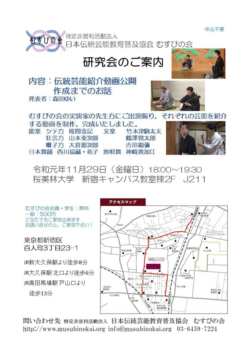 伝統芸能紹介動画を作成に至った話。先生方との撮影の秘話など制作時のお話をお聞き頂きながら、動画をご覧いただきます。